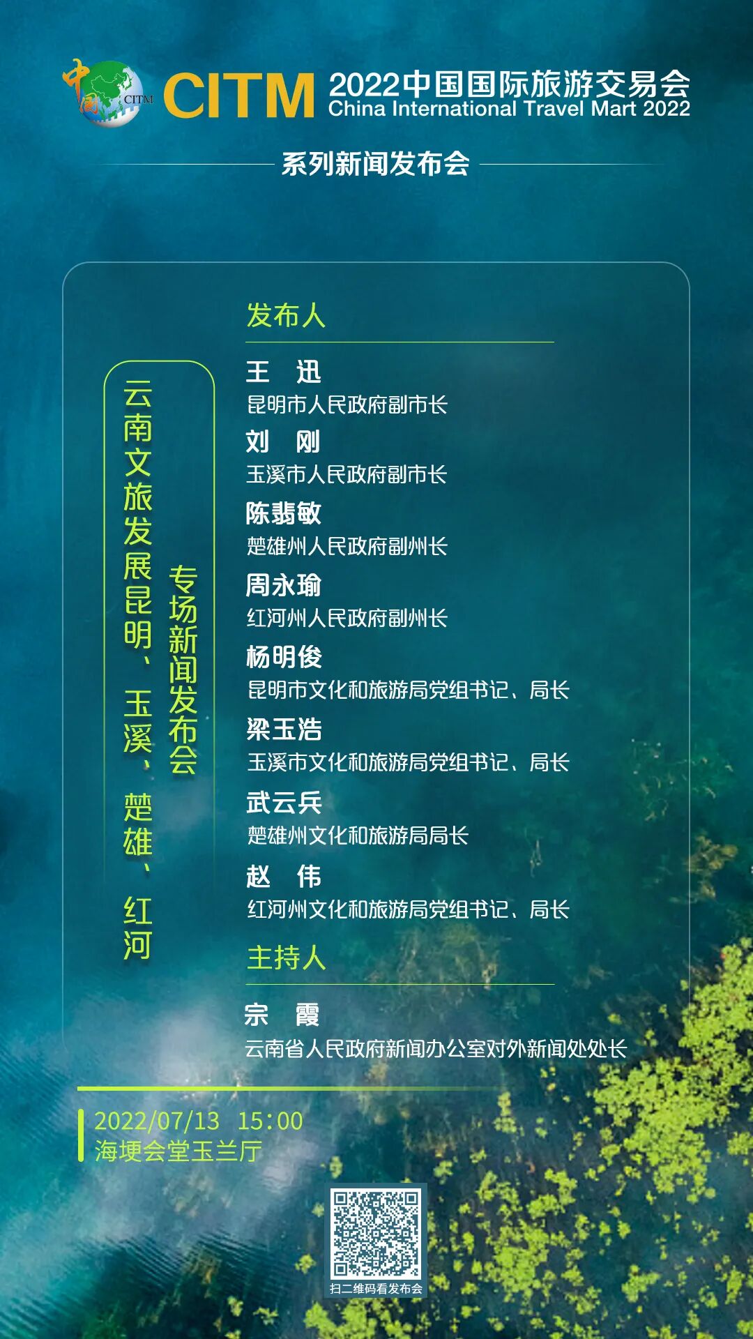 7月13日下午,云南文旅发展昆明、玉溪、楚雄、红河专场新闻发布会在海埂会堂召开,介绍相关情况并回答记者提问。