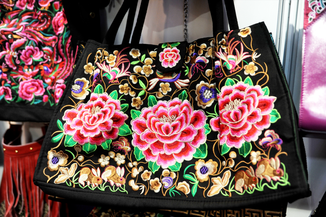 张丽琼也有同样的感悟。由于频繁参加各地的展会,2017年,她借鉴别人经验着手生产彝绣相关产品,不过一开始并不顺利。“我看到别人把绣片和皮具结合起来非常好,我就想着彝绣为什么不可以?”张丽琼说,她花了10多万元制作了一批彝绣包包,投放市场后,效果并不理想。“我用了大红的花朵绿色底,民族味特别浓,我认为非常漂亮,但是顾客不一定这么认为。”